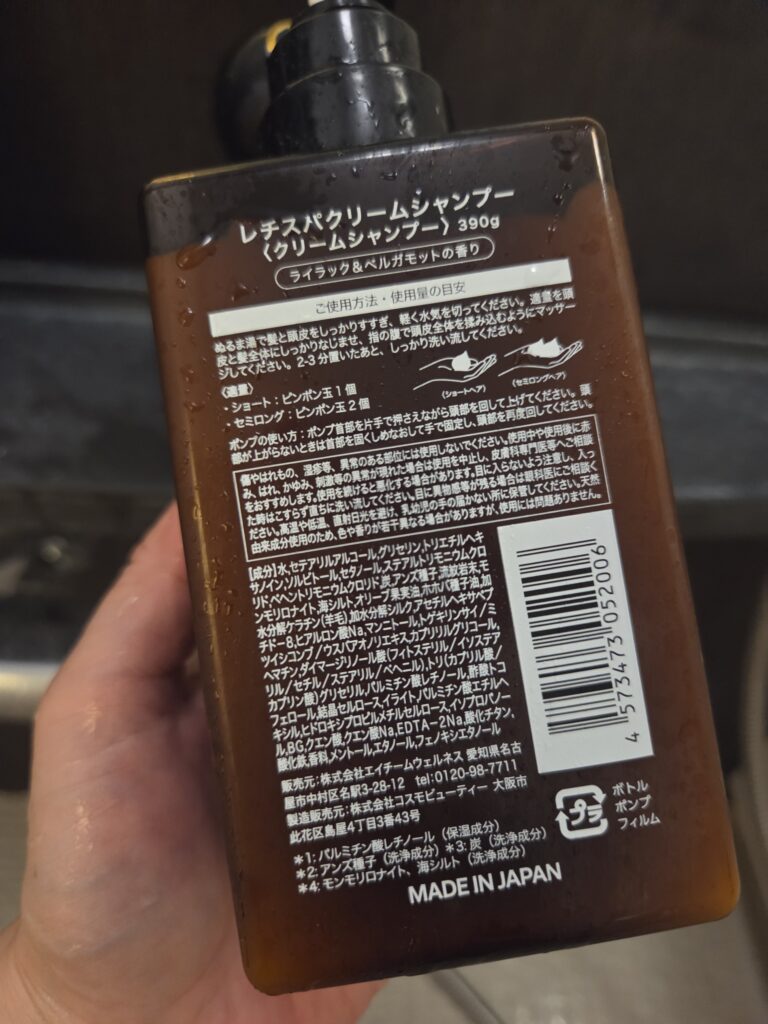 成分ご覧のとおり、レチスパクリームシャンプーにはシリコーンが入っていないので、ツヤが欲しい方はアウトバストリートメントを使うことをおすすめします。私はもちろん!ビタミンリペアトリートメントでレチノール追加補給!!