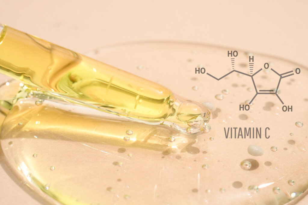ビタミンCはコラーゲン合成に必須の栄養素です。毛穴ケアや小じわケアとしてビタミンCが配合されているのは、コラーゲン生成で肌がふっくらして毛穴や小じわが目立たなくなる…という理論。